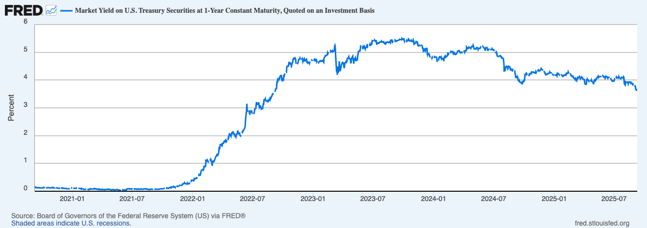 The 1-year Treasury yield this week has been roughly 3.7%.